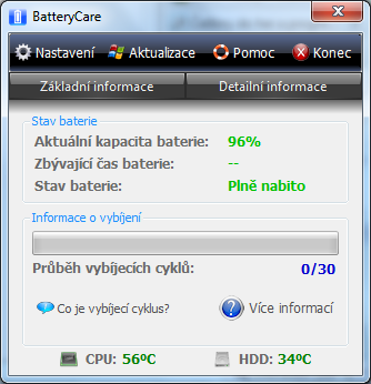 BatteryCare je aplikace zdarma, která podává detailní a přehledné informace o stavu baterie přenosných počítačů.