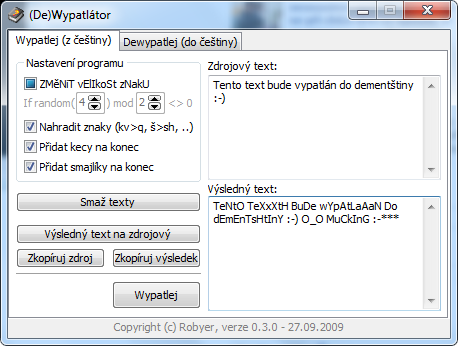Program slouží pro vytváření deformovaných textů, často používaných mladší generací. Také se snaží o zpětný překlad těchto textů do normální formy.